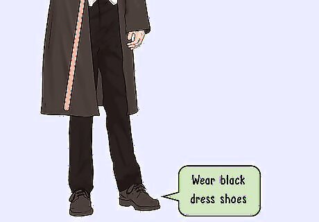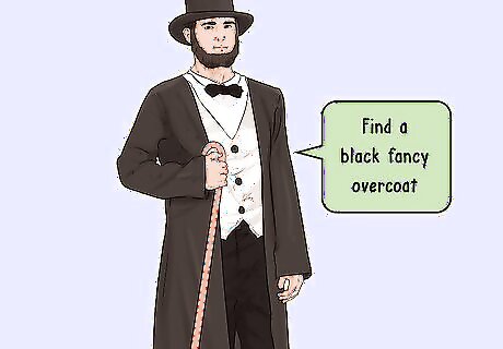 Find a black fancy overcoat. Lincoln may have had a lot of folk sense in him, but he never turned down an opportunity to look civilized and classy. His dress of choice was always a black overcoat. So long as the coat doesn't have any visible logos or symbols, you can use any black overcoat for this. Look at existing Lincoln costumes or pictures of the man himself and decide if any coat you have fits the bill. A grey vest underneath may help to round off your costume. However, if you can't find one of those, a white dress shirt will do. You may also choose to button up your overcoat.