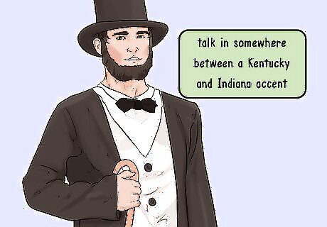 Approximate Lincoln's accent. If you want to go the extra mile, try to nail his likely accent. Compared to modern accents, Lincoln might be pegged somewhere between a Kentucky and Indiana accent. Look up examples of these accents and pick up on the ways in which particular sounds are inflected. Contrary to what you'd think, many accounts state that Lincoln had a soft, light voice, "like a bird". Actors have tried to replicate Lincoln's way of speaking. Look at a reading of Lincoln's speech and get a hang for the way an actor will inflect his voice.
