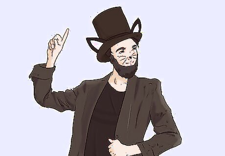Combine ideas from different costume sets. Because there are countless things you can do with a costume, don't be afraid to splice your Abe Lincoln design with other costumes. For instance, a cute cat costume can be merged with a Lincoln costume by taking the whiskers and ears, and throwing them together with the chin beard and top hat. If you have a stockpile of costume materials, you should experiment with different combinations using what you already have. You get bonus points if you're able to make Abraham Lincoln pun from the combination you've created.