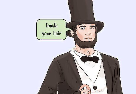 Tousle your hair. Lincoln was known for preferring to keep his hair unruly, as opposed to smooth. If your hair length is approximately that of Lincoln's, you should tousle it up by rubbing your hands coarsely through it. If your hair is quite long, you can get some of the same untidy impression by trapping all of your hair under your top hat and letting a few strands hang loose.