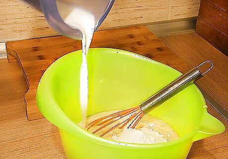 Mix in the milk and flour. Add in the butter, baking powder, and vanilla. Whisk thoroughly.