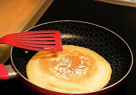 Pour about 1/4 cup of the pancake batter into the skillet. Wait until the top forms bubbles, flip the pancakes, and cook until browned as desired.