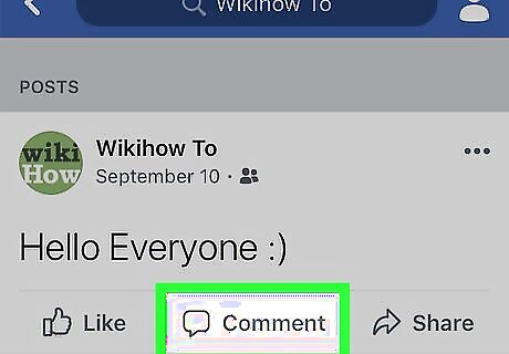 Find a post to comment on. Scroll down the News Feed until you find a post that you want to comment on. You can also create a status by tapping the status box near the top of the News Feed.