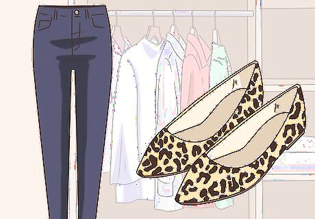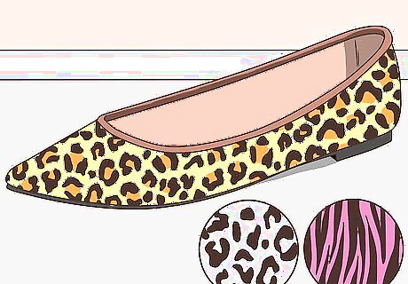 Go with an animal print. Leopard and zebra prints are very stylish right now and many shoe designers are incorporating these prints into their flats. Opt for rich textures and natural color combinations, which have the most high-end vibe. Leopard print pointed-toe ballet flats are especially popular for their versatility and streamlined design.