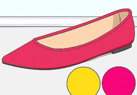 Look for bold colors. A bold pop of color can turn a regular pair of flats into trendy statement shoes. Go for bold hues like cherry red, yellow and pink. Shop for bold-colored flats made of rich materials like suede or velvet. The texture of these luxe fabrics adds an additional dimension to the already eye-catching color of the shoes.