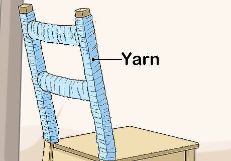 Wrap your wooden chair sides in yarn. A little yarn can make wooden IKEA chairs look softer and well-worn. Wrap the yarn tightly along the sides of the chair's back so the yarn stays snug, then knot the edges to secure it in place. Thicker yarn tends to look better and stay in good condition longer.