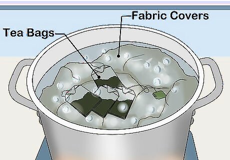 Try tea-dying fabric covers. If your furniture cover is small enough to soak, you can dye it to achieve an aged look. Boil a large pot of water and add 4-6 tea bags to the water. Let the tea steep until the water turns reddish-brown, then immerse your fabric cover into the solution for up to 10 minutes. If you would prefer a darker color, you could also dye your fabric with coffee.
