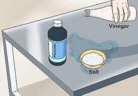 Make your metal furniture rust. To age your metal furniture quickly, rust it with vinegar, salt, and peroxide. Rust your metal gradually to avoid over-aging your furniture and accidentally damaging its functionality. If you decide that you don't like the look of rusty metal, restore it with a chemical rust remover, acidic solution, or electrolysis. These methods can repair the object but may not return it to its original state, so think carefully before you rust your furniture.