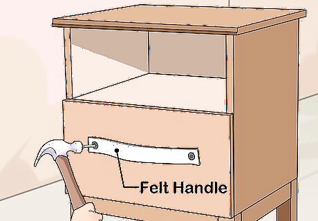 Add felt handles to make furniture look worn. Remove your furniture's current knobs or handles and replace them with felt for a softer, aged feel. Cut a strip of felt to the size of your handle, using the old handle as an approximate guide. Make two holes on either side of the strip and fasten it onto the furniture with nails or screws. You could also make leather handles as an alternative if you want to use a sturdier material.
