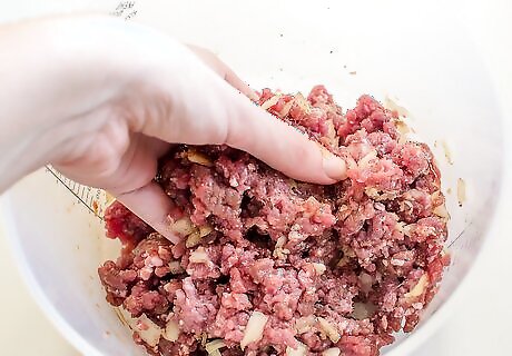 Oil a baking sheet. You will need to create a space for the meatballs to rest once you prepare them. A large baking sheet works well for this purpose. Lightly oil the large baking sheet and set aside. If you don’t have a large baking sheet, you can oil a large cutting board or platter instead.