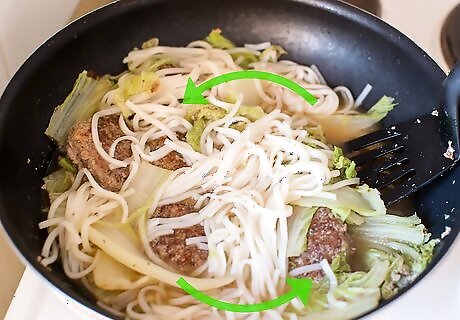 Serve the meatballs. Use tongs or a slotted spoon to place a pile of noodles and cabbage on each individual plate. Place the meatballs on top of the noodles and cabbage. Enjoy!