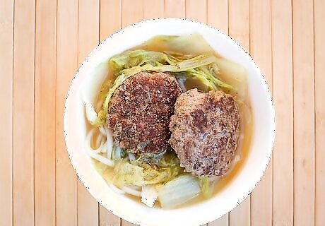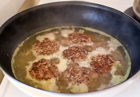 Decrease the heat and simmer the meatballs. After you bring the meatballs and broth to a boil, reduce the heat to medium-low. Simmer the meatballs uncovered for 5 minutes.