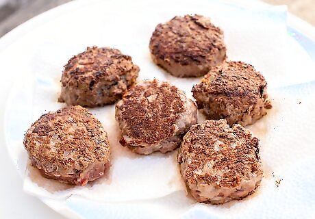 Drain the meatballs. After you the meatballs are evenly browned on all sides, use the tongs to remove them from the skillet. Place the meatballs on the paper-towel lined plate and let them drain.