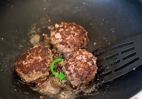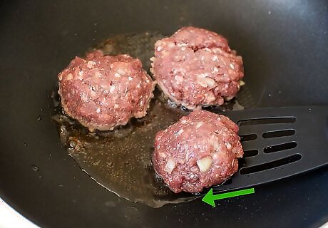 Decrease the heat and cook the meatballs. After you arrange the meatballs in the skillet, turn the temperature down to medium. Cook the meatballs until all sides are well browned, using the tongs to turn the meatballs occasionally. This should take about six minutes.