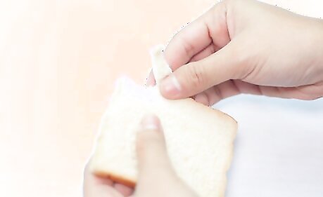Peel the crust off. Discard. If you are losing too much white bread, then cut with a knife.