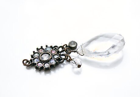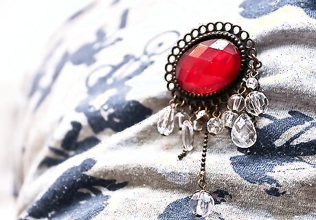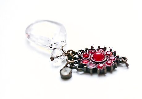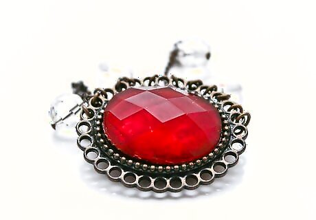 Lay the piece of Jewelry on a covered, flat work surface. Decide how you would like to change the piece––choose the parts of it that you'll change the color of, along with which colors you'll use. Usually you'll be focusing on whatever counts as "gems" in the Jewelry, to give them a new, colorful appearance. For example, you might only choose to color broken or faded parts of the Jewelry. Or, you might choose to color pieces in a pattern, alternating colors. Another alternative is to color the whole piece. For your first few tries, give everything a trial, so that you can develop your own unique flair; just be sure to use the cheapest items to begin with.