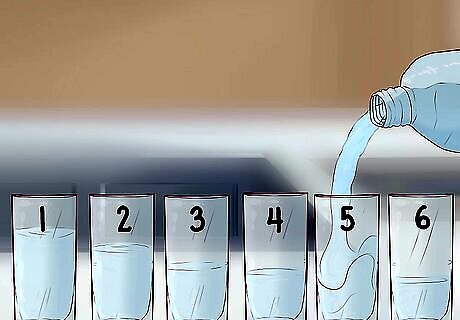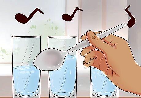 Play a few songs. Fill 6 glasses with varying amounts of water - between three and a quarter inches all the way up to five and three quarters. Label them numerically, one through six. With just these six glasses, you can play some simple tunes. To play "Hot Cross Buns," tap each glass as follows: 3, 2, 1, 3, 2, 1, 1, 1, 1, 1, 2, 2, 2, 2, 3, 2, 1. To play "Mary Had a Little Lamb," tap each glass as follows: 3, 2, 1, 2, 3, 3, 3, 2, 2, 2, 3, 5, 5, 3, 2, 1, 2, 3, 3, 3, 3, 2, 2, 3, 2, 1.
