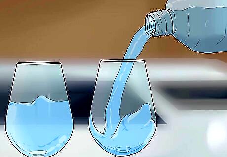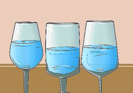 Fill a variety of wine glasses. By filling multiple wine glasses with different amounts of liquid, you can produce a range of notes. Put on a little after dinner show by yourself, or invite the kids to make some music. Wine glasses come in a variety of shapes, some thinner, and others squatter. The types of sounds produced by these glasses will differ from a standard glass, so try a variety of types. Wine glasses can also be played while partly submerged in water. This is called an inverted wineglass harp, and can allow you to play multiple notes easily with just one glass.