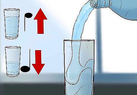 Fill a standard drinking glass with water. The amount of water you place in the glass will affect the pitch of the sound that is created. The more water placed in the glass, the lower-pitched the sound. Conversely, the less water placed in the glass, the higher-pitch the sound. Fill several more glasses of water to replicate several different musical notes. Such glass-based instruments have been in use for many years! More delicate glasses, such as wine glasses, are not ideal for making percussive sounds. They are fragile, and more prone to breaking when rapped with an object.