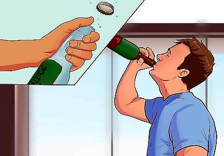 Drink that beer. You want to make different sounds, don't you? Alternatively, you can uncap several beers and drink them in varying amounts to create a few different pitches to choose from. Grab a few old bottles from the recycling bin and fill them water, if you don't feel like drinking copious amounts of beer (or are not of age). Cookouts or house parties are perfect opportunities to gather a group of bottles together for creating music.