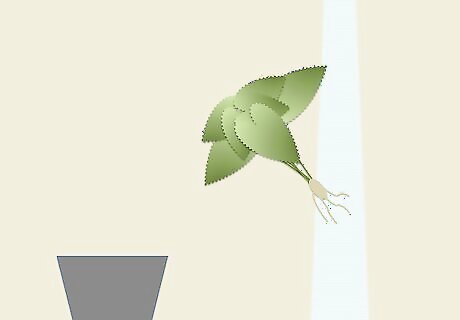 Pop the plant out of its growing pot if you are growing from seedlings. Rinse the roots until they are free from any soil debris. Thread the roots through the holes in the net pot and fill with growing medium. Place the net pots in the hole you have made for them.
