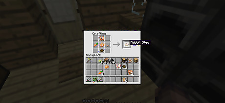 Craft the rabbit stew. Place the bowl at the bottom of the middle column, then place the baked potato on top of the bowl, and the cooked rabbit on top of the baked potato. Next, place the carrot on the left side of the potato, and the mushroom on the right side of it. This will make 1 rabbit stew.