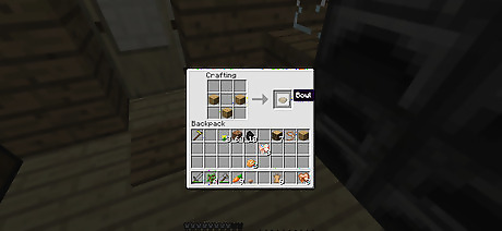 Craft a bowl. You will need 3 wooden planks to craft a bowl. Chop down a tree to get at least 1 wood log, then open a crafting table and turn the log into wooden planks. Then place 1 wooden plank in the middle of the left column, one in the middle of the right column, and 1 at the bottom of the middle column in the crafting table. This will give you 4 bowls.