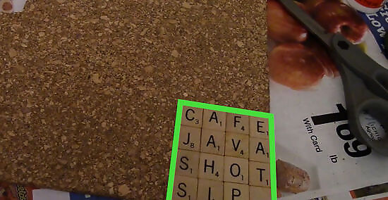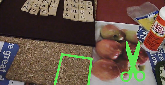 Cut the cork board out. Use an X-Acto knife to "draw" a square around the border of the square letters and then finalize a cut-out.