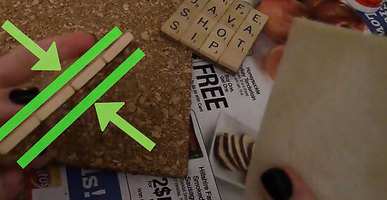 Measure your cork board. Use the glued letter square as your "size pattern" by laying it on top of the cork.