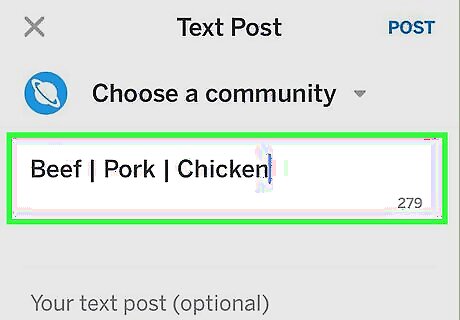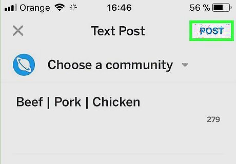 Create a new post or start a new comment. You can start a new post by tapping Post something interesting and then tap Text, or you can find a post or comment to reply to by tapping the Reply button.