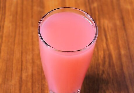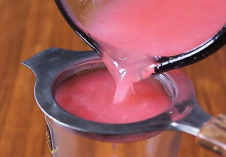 Add water, as needed. With no water, your juice will be more like a syrup-y concentrate. Add a bit tablespoon by tablespoon, blending in between. Stop when it reaches the consistency you want. There will probably be tiny chunks floating around preventing you from having a smooth consistency; this is normal. We'll take care of those in the next step.