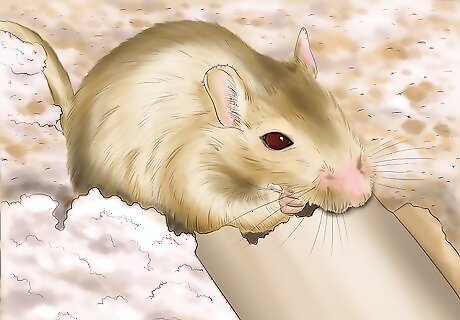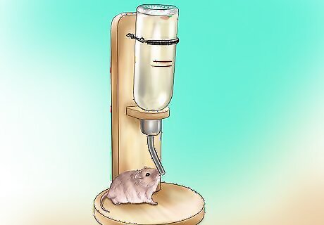 Provide a water bottle for your gerbil. Gerbils need to have access to clean fresh water at all times. Use a hanging water bottle to provide your gerbils with plenty of water. Make sure that the water bottle’s tip does not touch or come too close to the bedding or the water may drain out. Check the water bottle’s tip daily to make sure that it is working properly.