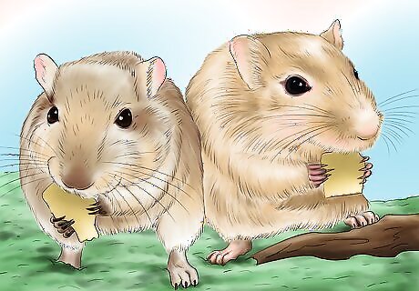 Consider getting two same-sex gerbils and not just one. Gerbils are very social creatures and like to live with other gerbils. When first buying your gerbil you should consider getting more than one. This will keep your gerbil much happier. However, if you already have a gerbil(s) and introduce a new one, it is likely that they will fight. Studies have shown that lone gerbils live a shorter period of time. Consult a vet before getting another gerbil to see if it is a good idea for the health and well-being of your pet. If you decide to get another gerbil, you may need to use a split cage to introduce the new gerbil to the old one before putting them into the same cage. Do not get a male and female gerbil or they will breed. While the baby gerbils may be cute at first, gerbils breed quickly and it is easy for a pet gerbil population to get out of control. Most people would find it difficult to provide adequate housing, food, and care for dozens of gerbils.