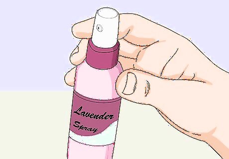 Use lavender linen spray. Lavender is a very strong scent that many associate with spring. Purchase a lavender linen spray online or at a grocery store. Spritz it over your sheets, clothing, and furniture to freshen up the room. Remember to test your spray on a small portion of furniture and clothing first to make sure it does not cause discoloration.