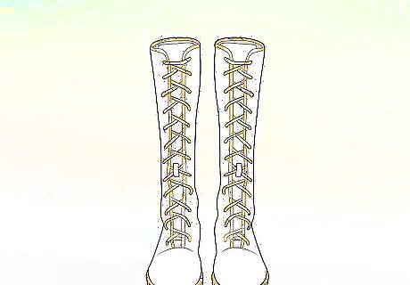 ShoesRumi’s “Golden” and “What It Sounds Like” shoes are white knee-high lace-up boots. You can go thrifting or shopping for a pair, or find a pair you like online and order them from home. Either way, it shouldn’t be too hard to track down boots that work for this costume!