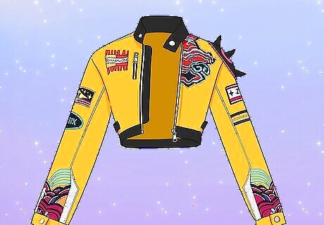 Add iron-on patches to the jacket’s shoulders. There are colorful, 10-pointed star patches across each shoulder of Rumi’s jacket. Luckily, you can get iron-on patches with this exact design off of Etsy (here or here, for example). Just keep in mind that some jacket fabrics may not work well with an iron, like a jacket covered in sequins. If that’s the case, you can use fabric glue or tape to hold the patches in place instead. With that, your Rumi jacket should be complete. Time to paint the town red and slay!
