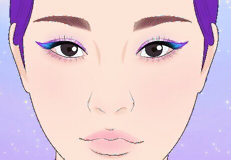 MakeupFor “How It’s Done,” Rumi’s makeup includes pink lip gloss and silver or pale blue sparkly eyeshadow. Once you’ve applied the eyeshadow, you can also add some black mascara to your eyelashes and paint winged black eyeliner on your eyelids. With that simple process, your Rumi makeup should be complete!