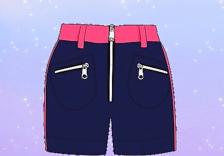 ShortsIn her “How It’s Done” look, Rumi wears a pair of navy blue shorts with a hot pink trim running vertically along the side seams. If you aren’t buying an already-made Rumi costume, shop (or thrift) for a pair of navy blue shorts. Then, attach strips of hot pink felt or fabric to either side of the shorts using fabric glue. And voila—you’re all set! If you’ll be walking around in cold weather with your costume, you can opt for something warmer—like navy blue leggings with the hot pink stripes down the sides instead.