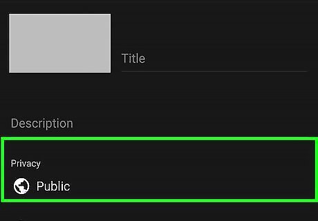 Tap to select a privacy level. Since you don't want your stream to be public, you can choose one of the following options: Select “Unlisted” if you want to be able to share a link with specific people. Nobody else will be able to find your stream unless they have the link. Select “Private” if you don't want anyone else to see your stream.