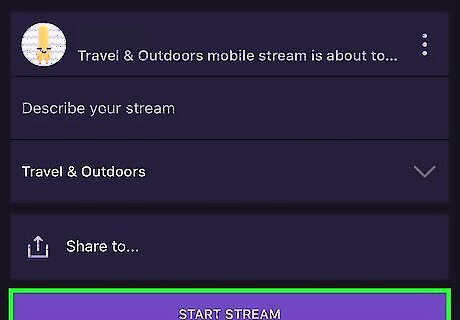 Tap Go Live. You’ll find this under your avatar. If this is your first time streaming with the Twitch app, you will have to allow the app to use your camera and microphone as well as go through a tutorial.