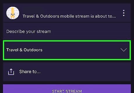 Tap the drop-down menu. You need to select a category to stream in, like Just Chatting or Makers&Crafters.