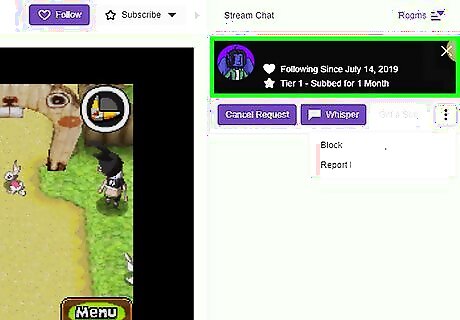 Open Twitch. This app icon looks like a white chat bubble on a purple background. You can generally find this on your home screen. Though you can't prevent people from viewing your Twitch stream, you can use this method to prevent certain users from contacting you. Log in if prompted. If you don’t have Twitch downloaded, you can get it for free from the App Store iPhone App Store Icon.