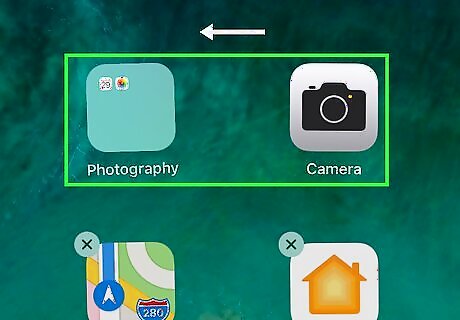 Navigate to your iPad's Home Screen. To do so, press the Home button--the circular button below your iPad's screen--to minimize an opened app, then press it again to arrive at the Home Screen. If pressing the Home button a second time doesn't do anything, you're already on the Home Screen. You can also close the app by double-pressing the Home button and then swiping up on the app's page.