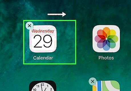Tap and drag the app to move it. You can drag the app to a point in between two other apps to place it there, or you can drag the app to the right side of the Home Screen to create a new page for the app. If your iPad already has multiple pages right of the Home Screen, dragging the app to the edge of the screen will allow you to place the app on one of these screens. You can place several apps in the bar at the bottom of your Home Screen. These apps will be available on any page right of the Home Screen.