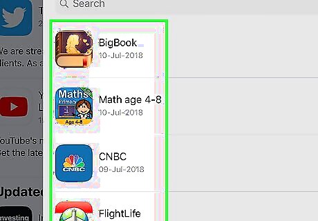 Tap Updates. This option is in the bottom-right corner of the screen.