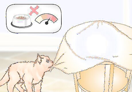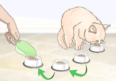 Break up your cat's meals throughout the day. Cats that suck on wool are usually very hungry. Instead of giving your cat one or two main meals a day, set out several smaller meals. You can also support your cat's hunting instincts by hiding dry food or putting it into puzzle feeders or treat balls. Hunting for food may also distract your cat from the wool sucking behavior.