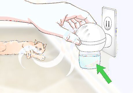 Use a Feliway diffuser to reassure your cat. A Feliway diffuser releases a synthetic feline pheromone that can help calm your kitty. If you change it once a month, it can provide relief to a stressed cat. If your cat is sucking on wool or fabrics to cope with anxiety or stress, the Feliway can help you get your cat to stop.