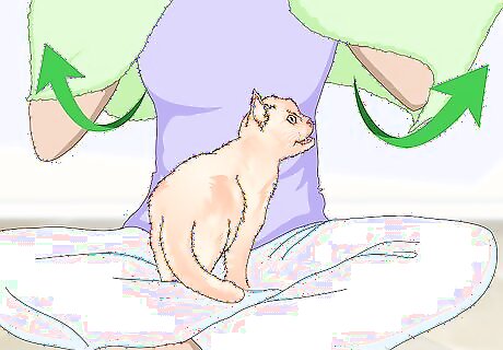 Spend time with your cat. If your cat is sucking wool because it's anxious or needs comforting, spend more quality time with your cat. Try to give it more attention and snuggles so it feels reassured. You can also play more games with your cat to keep it active and entertained. For example, try tossing small balls to your cat, playing with a laser light, or dangling ribbons for your cat.