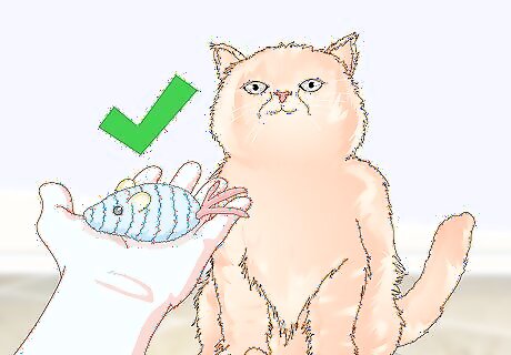 Offer chew toys to your cat. Just because you've removed the wool doesn't mean that your cat will instantly stop sucking or chewing on things. To manage the behavior, give your cat things that it can suck or chew on like: Cat chews Approved large bones to chew (not chicken or poultry bones that can split) Treat biscuits Cat toys, such as small mice with catnip stuffing