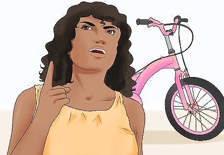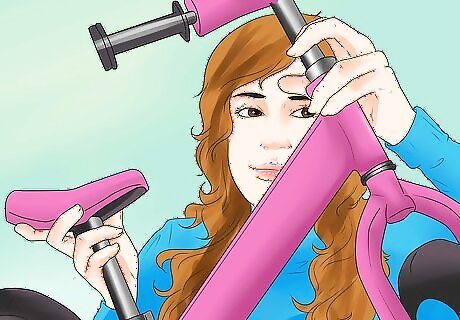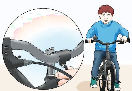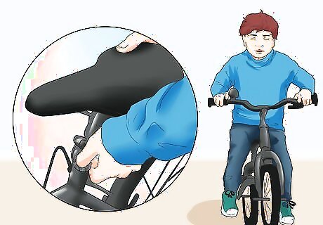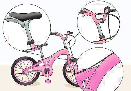 Let your child test drive the bike before you purchase it. When sitting on the seat with their hands on the handlebars, a child should be able to place the balls of both feet on the ground at the same time. Your child should be able to straddle the tallest bar on the bike while still having their feet flat on the ground on both sides of the bike, which helps them quickly stop the bike or get off if they start to fall. If your child can’t fulfill these requirements, try a smaller size bike or adjust the seat so it is on a lower setting.